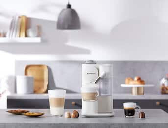 Genießen Sie dank der Nespresso Lattissima One hochwertigen Kaffee bequem bei sich zu Hause. Diese raffinierte, weiße Kaffeemaschine setzt sowohl im Aussehen als auch in der Ausstattung ein stilvolles Statement und bietet gleichzeitig eine Reihe von hochwertigen Kaffeerezepten. Das Single-Serve-Cappuccino-System und andere umweltfreundliche Funktionen sorgen dafür, dass möglichst wenig Abfall entsteht.