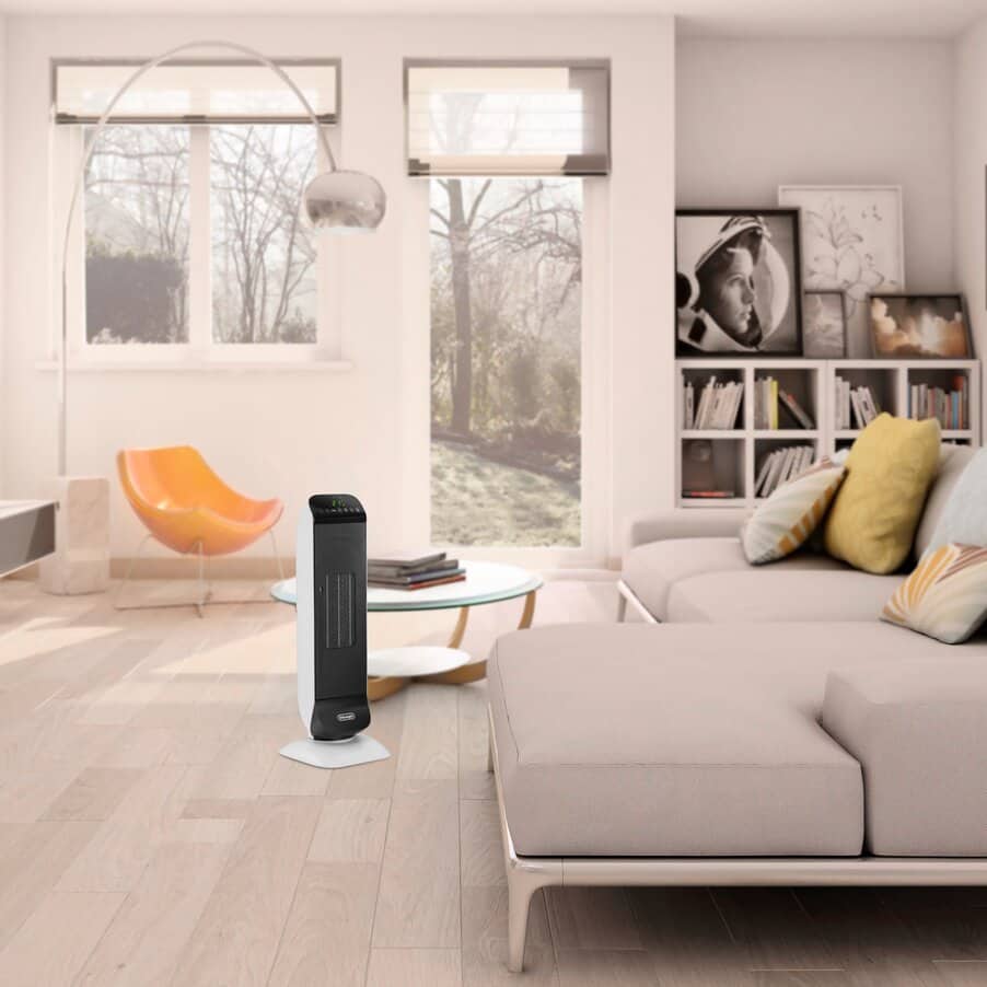 Say hello to the 1500-watt De’Longhi HFXR26S15WCA ceramic heater, one of De'Longhi's first products in North America with 40% recycled plastic, a digital thermostat, 24-hour timer, full-function remote, and fan function for year-round use. This portable heater delivers fast and even wide-range heat, transforming small spaces and providing individual comfort. Maximize energy savings with our ECO function, which automatically adjusts heat and power settings.