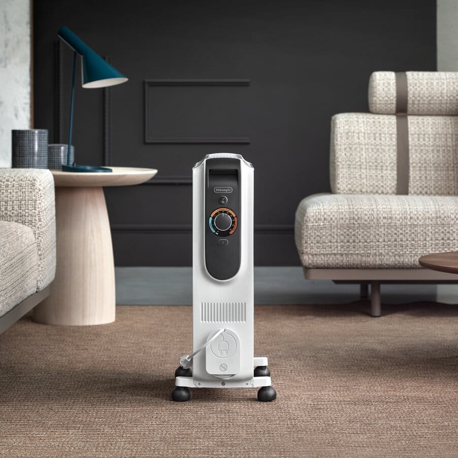 (1) Consommation d’énergie par rapport à un modèle TRD4 (commandes mécaniques) de De’Longhi. Test dans une pièce de 45 m³ pour maintenir une température confortable stable de 22 °C.