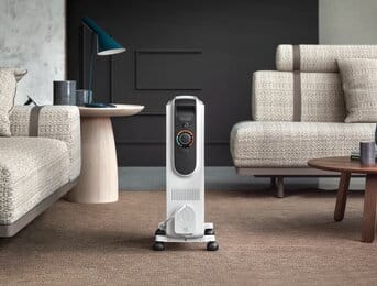 (1) Consommation d’énergie par rapport à un modèle TRD4 (commandes mécaniques) de De’Longhi. Test dans une pièce de 45 m³ pour maintenir une température confortable stable de 22 °C.
