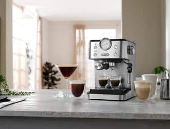 Scopri il design raffinato e le funzionalità intuitive della macchina da caffè manuale De'Longhi Classic. Prepara un espresso o un cappuccino esattamente come piace a te grazie al Cappuccino System regolabile, alla possibilità di personalizzare la lunghezza del caffè e ad altre funzioni ancora. Questa macchina da caffè in acciaio inox, elegante e di ispirazione italiana, si adatta perfettamente a qualsiasi bancone della cucina.