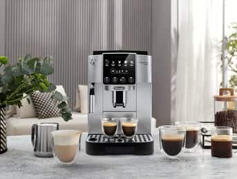 Betreed de wereld van koffie van boon tot kop met De'Longhi Magnifica Start, die alles biedt wat je nodig hebt om thuis aan de slag te gaan met je favoriete drankjes op basis van espresso. Hij beschikt over een gebruiksvriendelijke interface en een opvallende zilver-zwarte afwerking, en met slechts één druk op de knop geniet je van een drankje uit je persoonlijke selectie.