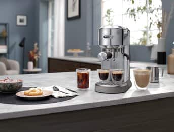 Obvladajte umetnost Espressa, Cappuccina in še več kave in mlečnih pijač doma z Dedico Duo. Uživajte v vroči in hladni kavi, vključno z ekskluzivnim receptom Cold Brew, in svojim pijačam zagotovite barista pridih s parno paličico My LatteArt. Ta kompaktni aparat ustreza vsakemu prostoru in brezhibno dodaja italijanski slog vaši kuhinji.