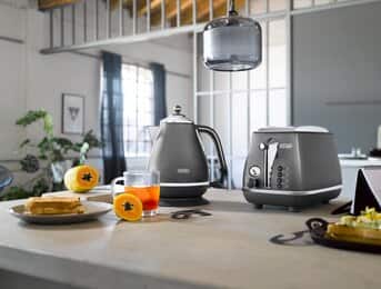 Opekač za dve rezini De'Longhi Icona Metallics zagotavlja vso potrebno priročnost in hkrati ohranja privlačen videz. Pogrejte, odmrznite in popecite kruh na želeni ravni z vgrajenim elektronskim nadzorom z vrtljivim gumbom s 6 naprednimi stopnjami uravnavanja zapečenosti. Sijajna siva izvedba tega grelnika vode bo vaši kuhinji dodala moderen pridih elegance.