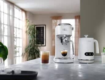 Penilnik mleka LatteMix je nepogrešljiva izbira za ljubitelje kave in vam omogoča odkrivanje široke palete mlečnih in kavnih napitkov s popolno peno. Obstaja nastavitev za okusno hladno mlečno peno in 2 namenski vroči nastavitvi, ena za mleko in ena za rastlinske alternative, kar olajša doseganje želene ravni pene. S prefinjeno brušeno belo prevleko in kromiranimi detajli ta oprema izstopa v vaši kuhinji.